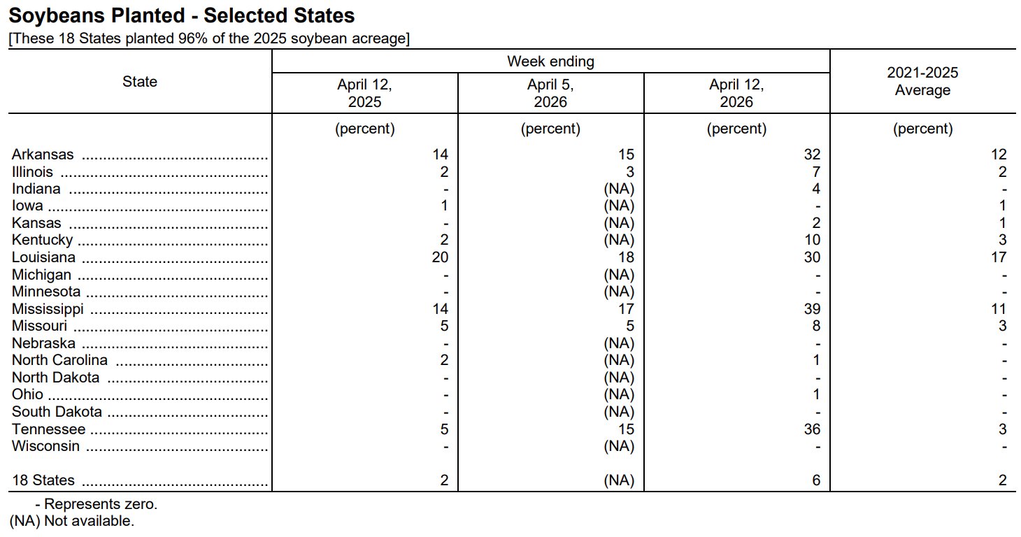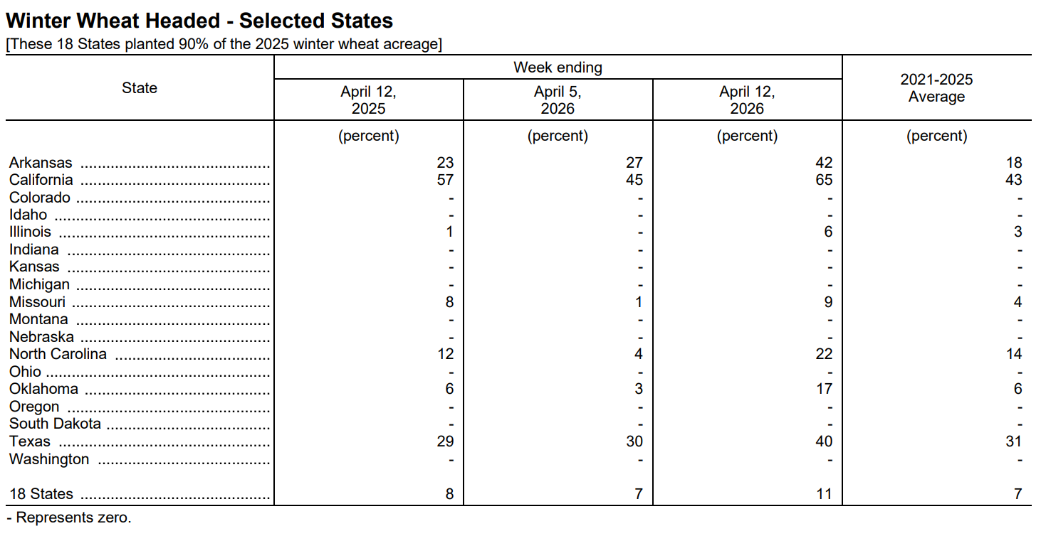 USDA: After each monthly USDA report during periods of significant crop progress.