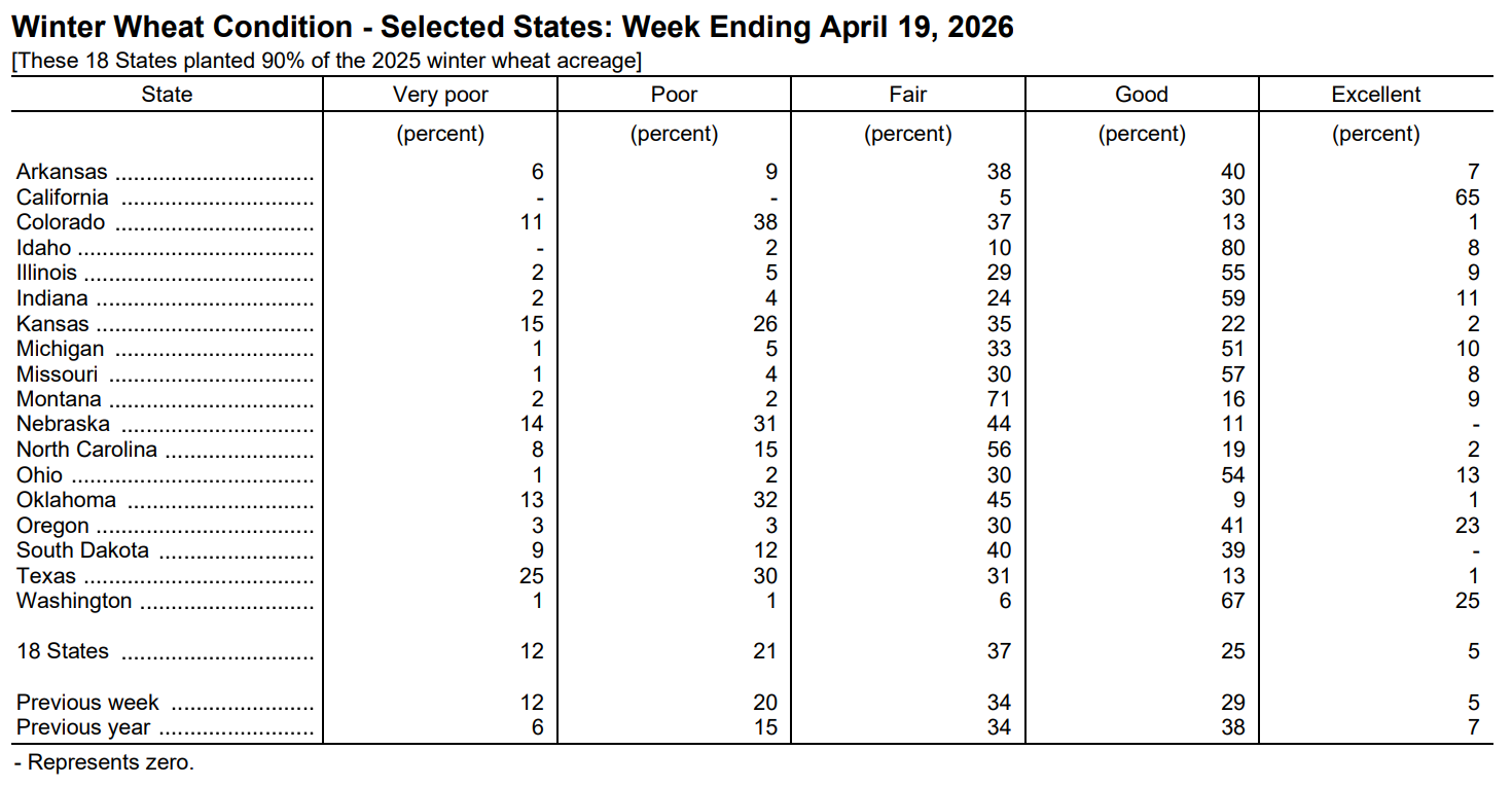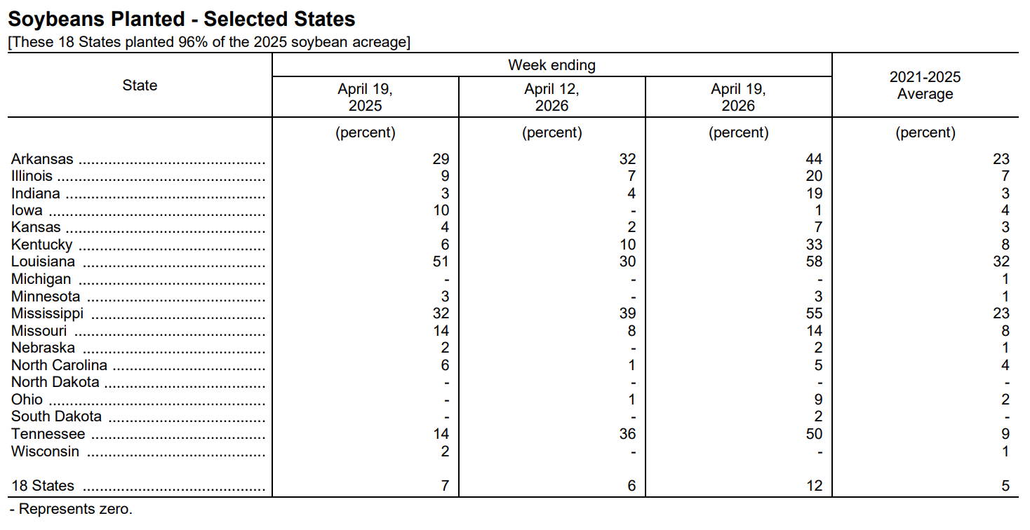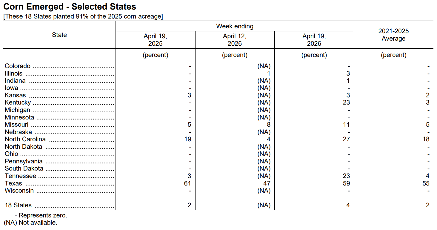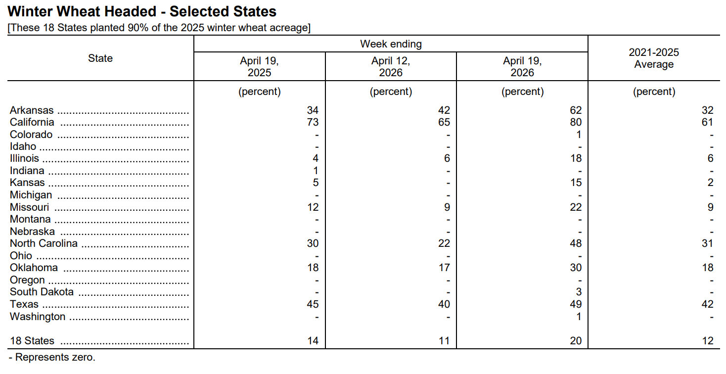 USDA: After each monthly USDA report during periods of significant crop progress.